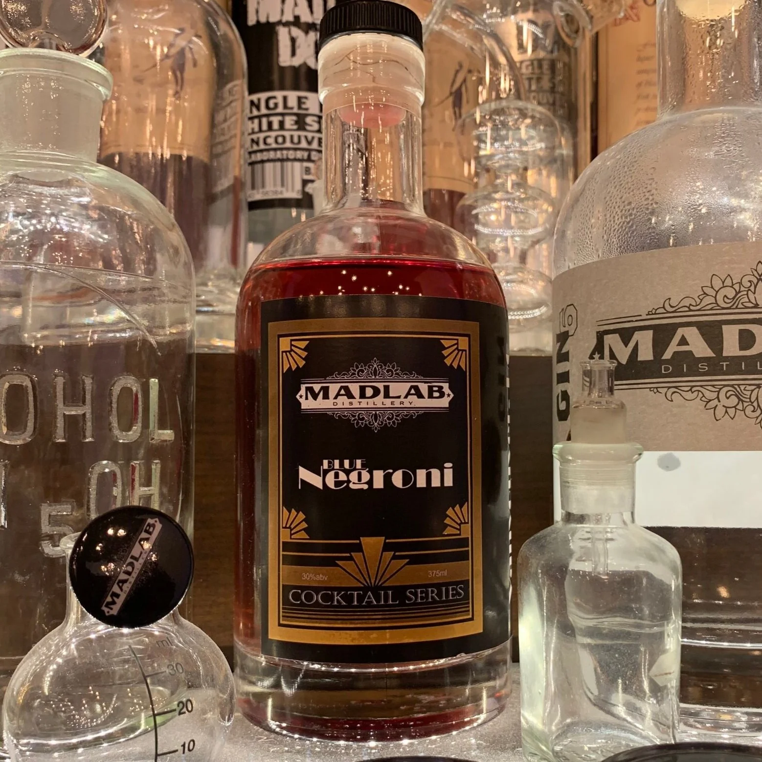 Premium batched cocktail, simply pour over ice and enjoy. Blue Negroni is a twist on a classic, blending Mad Lab Gin6, Blueberry Kombucha Cordial, and our House Amaro.